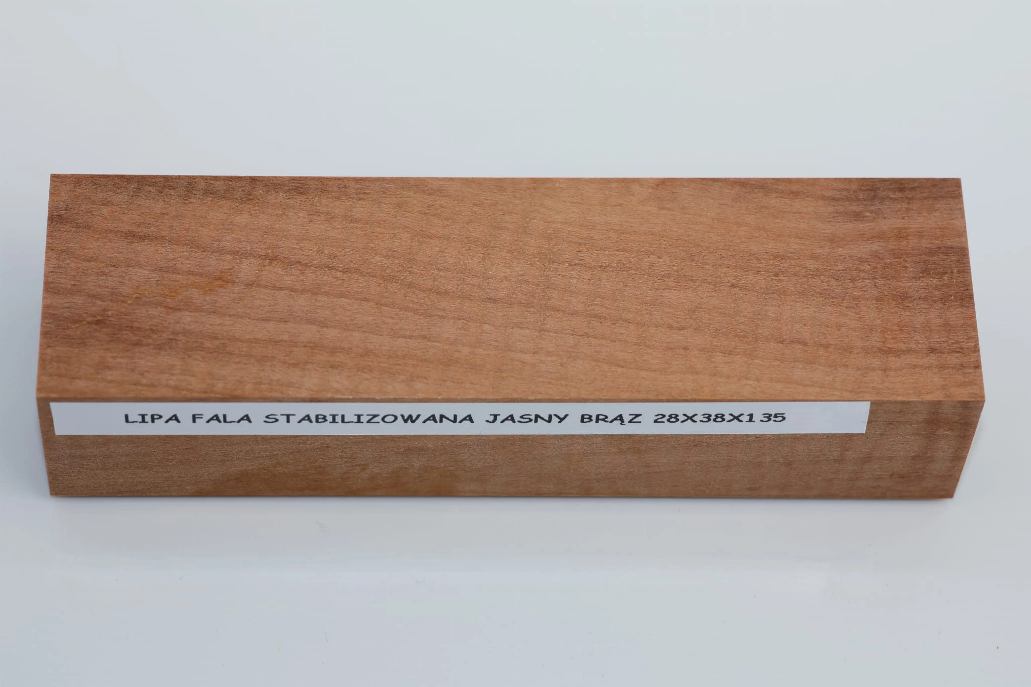 Lipa fala flame linden lime tree basswood brązowe stabilizowane drewno na rękojeść noża brown stabilized wood for knife 28x38x135 R01578