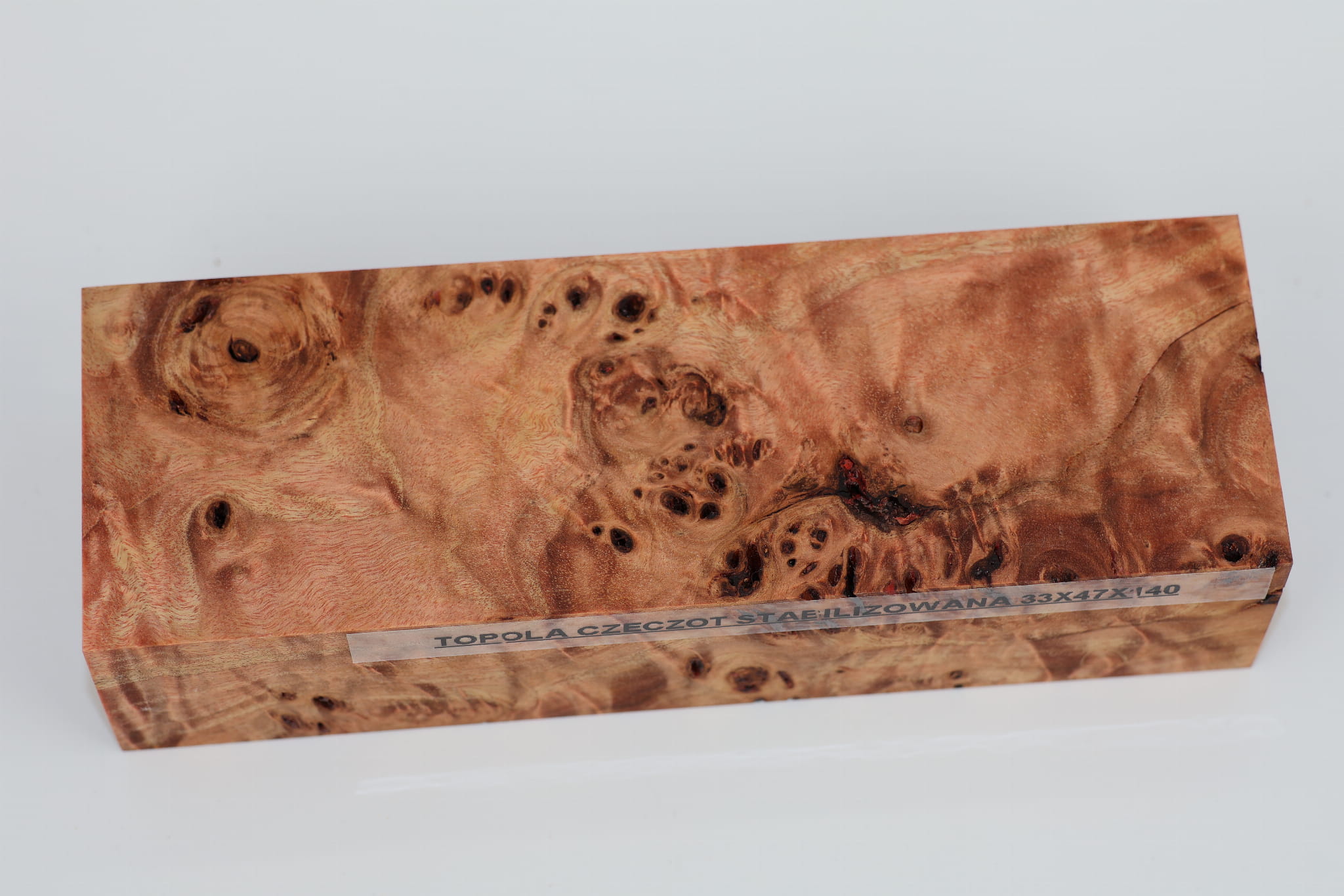 Topola czeczot jasny czerwony stabilizowana drewno na rękojeść noża 33x47x140 R00284
